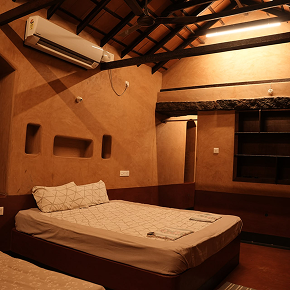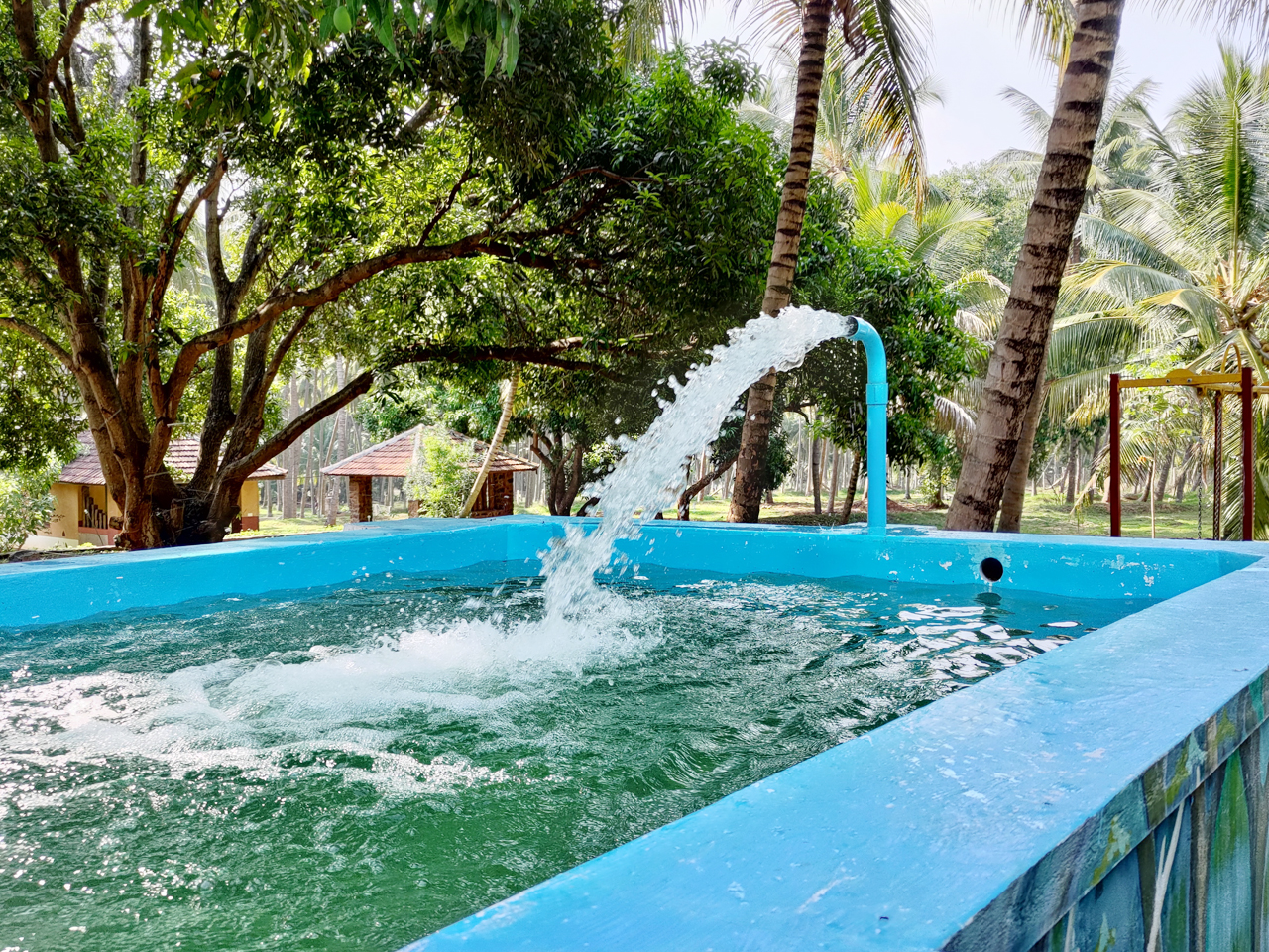 Simple & Authentic village styled home stay. It's Massive coconut farm but with only 3 boutique mud villas with private dinning & sit out. Its has huge pump & tank which is unique & alternative experience to swimming pools. Kids will enjoy. Overall value for the deal.