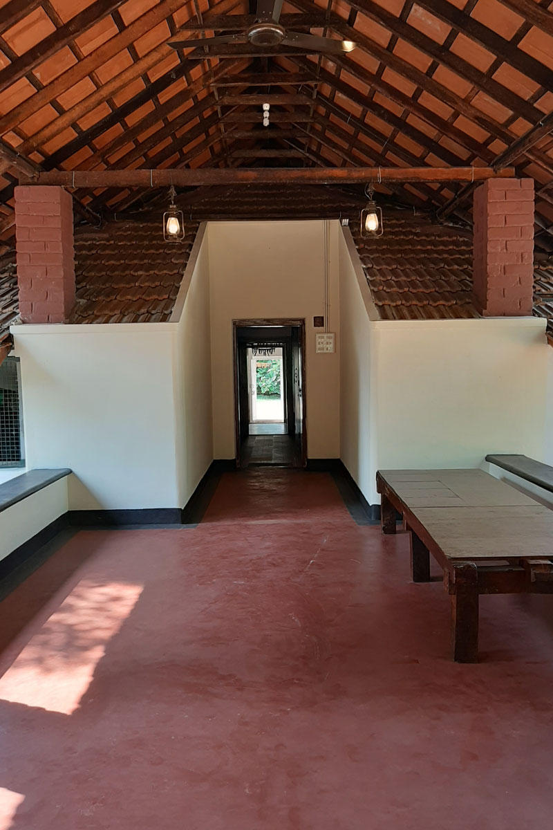 Indigenous palm trees are extensively used for roofing. These abundantly available, sturdy, hard stemmed trees are flexible, resilient and have been known for their age-old participation in the process of construction. Trees aged above 50 years with their high fibrous strength have been carefully chosen.