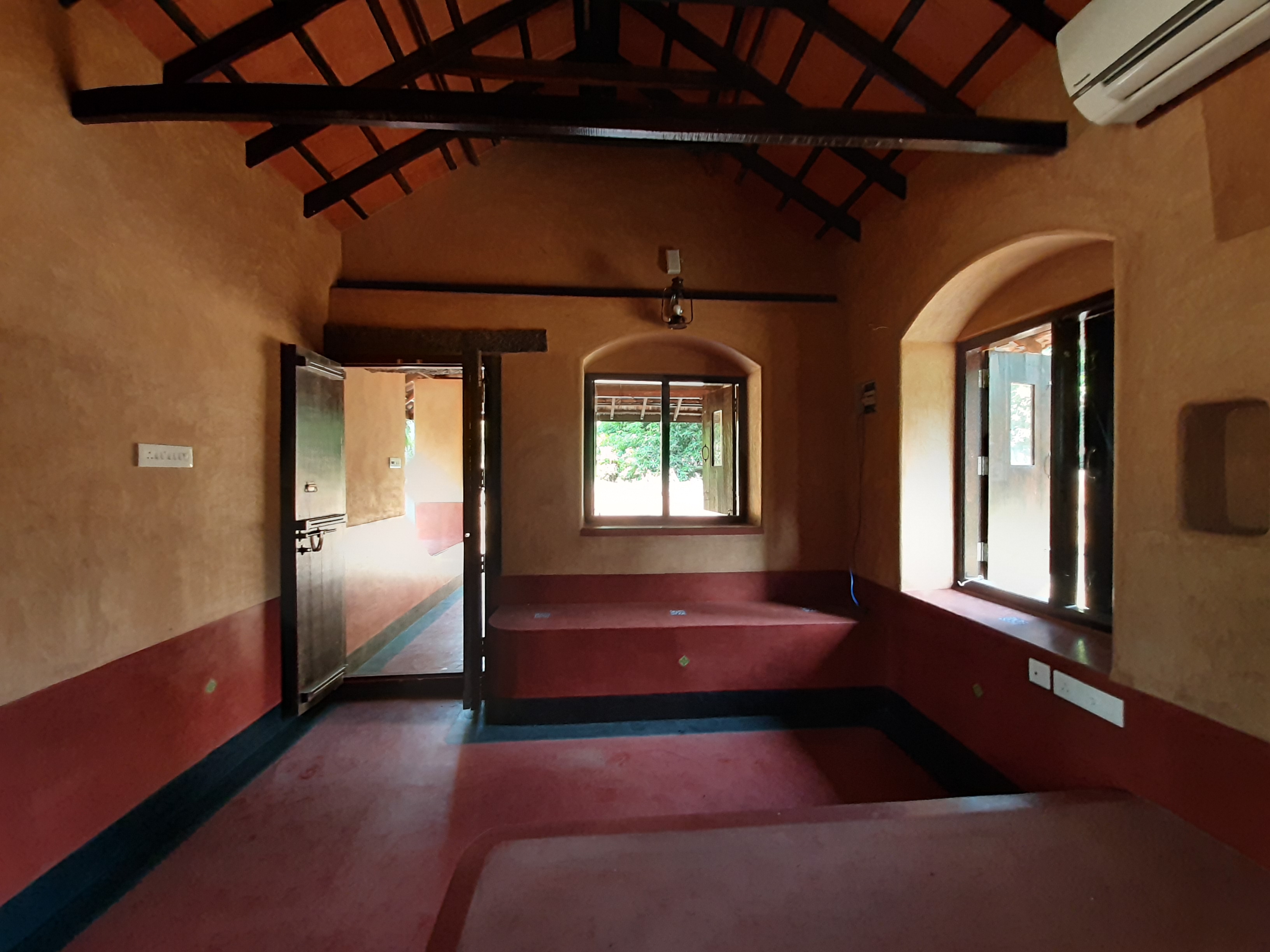 It's the perfect eco-friendly substance. It's sustainable, cheap, and you get raw material from the garden. It's easy to work with as well. These mud walls are of 2 feet thickness ensuring durability and strength of the structure. These massive walls breathe through its tiny pores and keep the air fresh and healthy. The thermal properties of cob regulate the temperature indoors and thus makes it energy efficient.